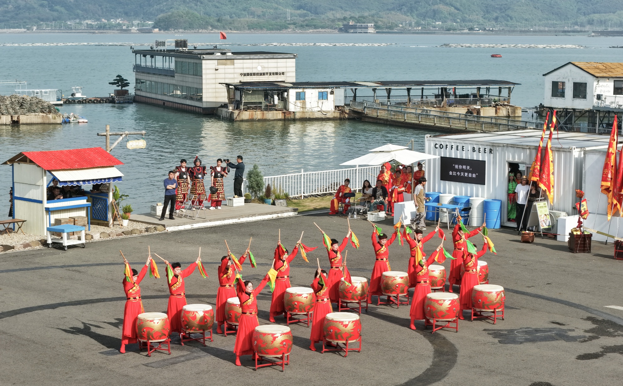 當(dāng)晚,漁村音樂集市在寧海灣畔持續(xù)上演,《漁光曲》《出海謠》的旋律伴著海風(fēng)輕輕流淌。藍灣共富集市旁,游客們提著魚燈、品嘗烤牡蠣、聆聽漁歌小調(diào),在山海與煙火間沉醉流連。