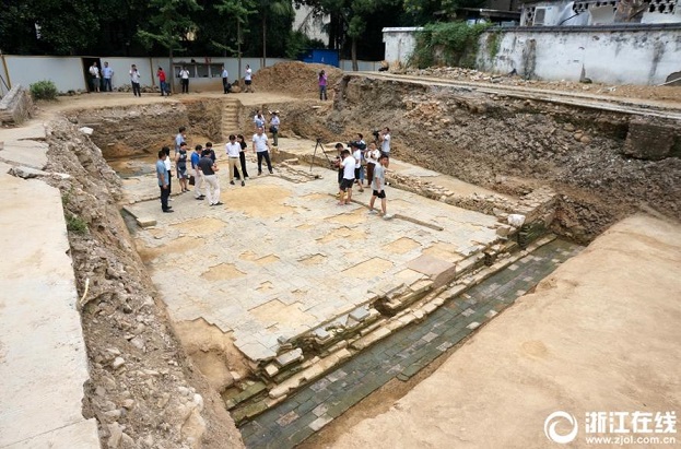 7月30日,由北京、浙江幾位重量級的考古專家組成的專家組,來到臨安市政府大院內(nèi)一處發(fā)現(xiàn)不久的千年古建遺存進(jìn)行“會診”,F(xiàn)場,發(fā)現(xiàn)了近期發(fā)掘的新證據(jù):一塊建筑用磚上模印有“大唐”的字樣,這個“大房子”的年代,屬晚唐五代吳越國遺存已經(jīng)沒有問題! ∧敲,如果要擴(kuò)大發(fā)掘面積,臨安市政府要不要搬遷?專家組建議:市政府可考慮另行選址建設(shè),以便從文化遺產(chǎn)更高層次利用的角度,保護(hù)和利用好這一文化遺產(chǎn)資源,促進(jìn)基于晚唐五代吳越國歷史資源的城市文化發(fā)展。(浙江在線記者 吳煌 攝)