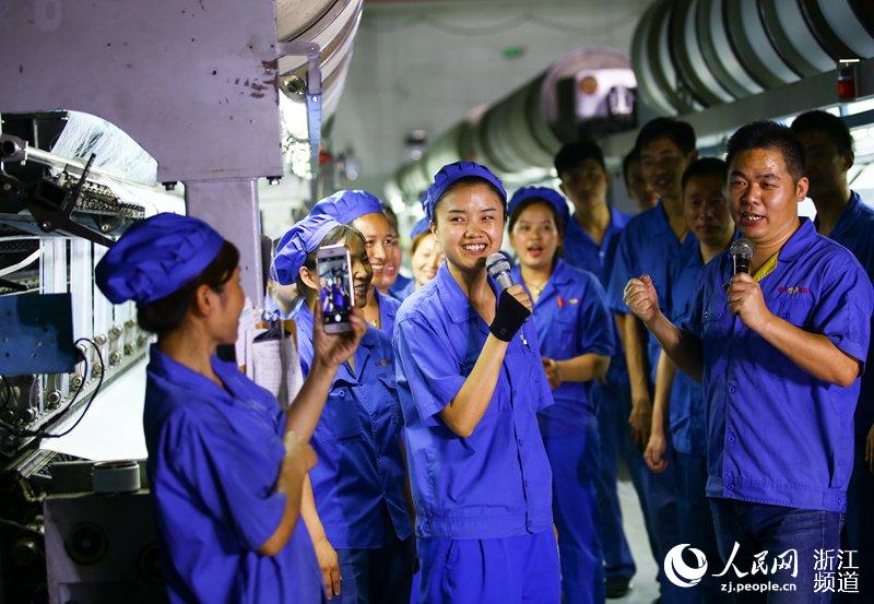 8月4日中午,嘉興桐鄉(xiāng)市銘龍集團(tuán)有限公司的經(jīng)編車間內(nèi)歌聲嘹亮,經(jīng)編車間內(nèi)的新時(shí)代的產(chǎn)業(yè)工人在午間閑暇之際開展拉歌比賽。一曲曲旋律優(yōu)美的歌聲唱響了他們豐富的業(yè)余文化生活。
