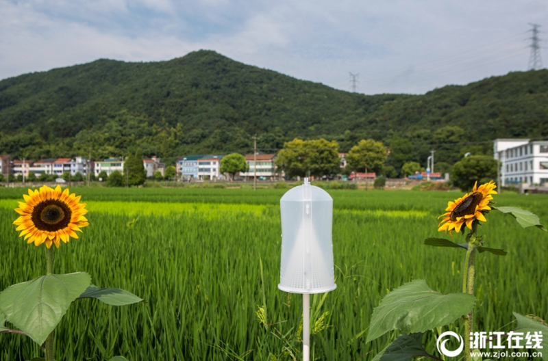 近日,在蕭山區(qū)戴村鎮(zhèn)南三村的水稻病蟲害省級(jí)綠色防控示范區(qū)里,出現(xiàn)了一個(gè)個(gè)白色“燈籠”。據(jù)了解,這些白色“燈籠”叫做“新型飛蛾誘捕器”。目前正是水稻二化螟防控的關(guān)鍵時(shí)刻,稻田承包戶通過它來誘殺雄性二化螟成蟲,以達(dá)到不使用農(nóng)藥、糧食增產(chǎn)的目的。(麥粒兒 攝)