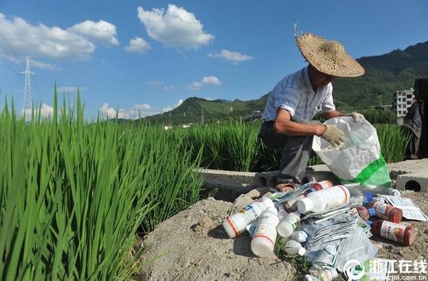 8月19日,臨安種糧大戶在撿拾農(nóng)田里廢棄的農(nóng)藥瓶、農(nóng)藥袋,歸集后就近投售到回收點(diǎn)。當(dāng)前正是水稻生長噴藥高峰期,臨安發(fā)動群眾撿拾田間的農(nóng)藥廢棄包裝物,切實(shí)減少和控制農(nóng)業(yè)面源污染。目前,該鎮(zhèn)廢棄農(nóng)藥包裝物回收達(dá)2.14噸,回收率得到了顯著提升。(浙江在線拍友 胡劍歡 攝)