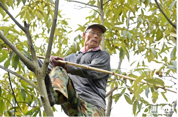“白露到,竹竿搖,小小核桃滿地跑!9月7日,農(nóng)歷白露節(jié)氣,是杭州臨安山核桃統(tǒng)一開采的日子。今年是山核桃小年,預(yù)計(jì)山核桃產(chǎn)量為1萬噸,上市時(shí)間在9月中旬。(浙江在線記者 吳元峰 攝)