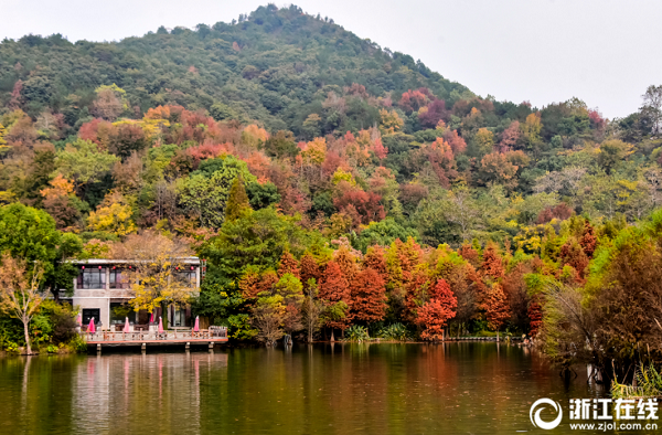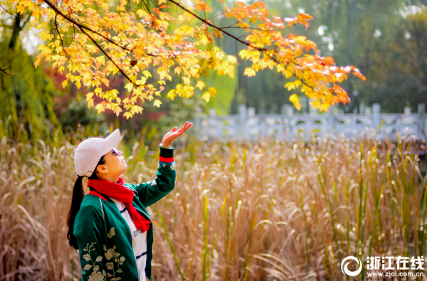 12月5日,臺(tái)州市路橋區(qū)中央山生態(tài)公園里的紅楓、落羽杉樹(shù)葉變得色彩斑斕,宛如畫卷的景色讓游客迷醉其中。(拍友 陳學(xué)德 攝)
