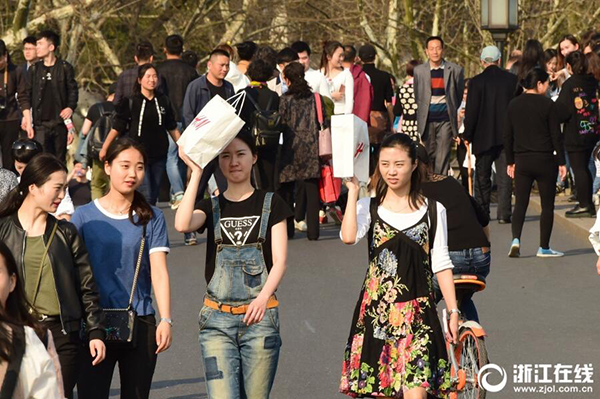 3月13日,杭州陽光明媚,暖意十足,踏青出游正當時。