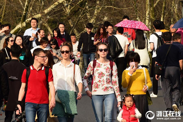 3月13日,杭州陽光明媚,暖意十足,踏青出游正當時。(里爾 柱子 連國慶 攝)