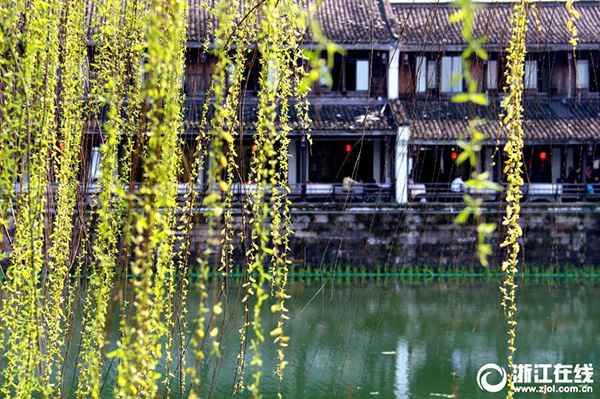 塘棲古鎮(zhèn)古運河岸邊清風拂面,楊柳飄飄。