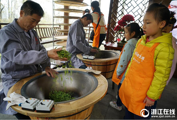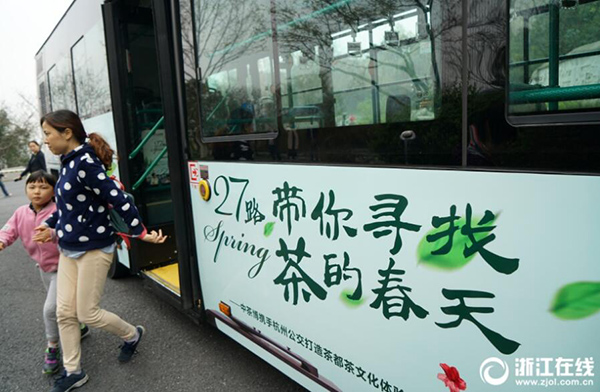 3月25日,西湖龍井茶進(jìn)入全面開采期,位于西湖龍井茶原產(chǎn)地一級保護(hù)區(qū)內(nèi)的中國茶業(yè)博物館聯(lián)手杭州公交集團(tuán),將往返于岳王路至茶博龍井館區(qū)間的27路打造成“帶你尋找茶的春天”茶文化體驗(yàn)專線公交,載著市民游客從市中心直達(dá)龍井茶園,體驗(yàn)西湖龍井茶的采茶、炒茶、品茶全過程。(記者 董旭明 攝)