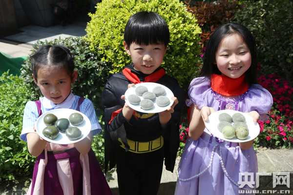 清明團子,有些地方清明團子又稱“清明果”,“清明蒿子粑”等。青團在各地有不同的叫法,上海、寧波叫青團,蘇州叫青團子,杭州叫青團子或清明團子。這種用艾草揉入糯米,加入各色餡料做成各種形狀的點心,是江浙地區(qū)清明前后家家戶戶都做的美食,也是清明掃墓祭祀祖先常用的貢品。(實習(xí)記者 魏煒 攝)