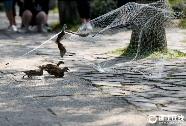6月21日,杭州孤山畔,全國鳥類環(huán)志中心的專家給西湖里的小鴛鴦戴上能辨識身份的腳環(huán)和GPS衛(wèi)星跟蹤儀,以便實(shí)時(shí)掌握鴛鴦的活動(dòng)范圍和遷徙規(guī)律。全球每年環(huán)志候鳥數(shù)百萬只,杭州的鴛鴦是首次入選。(浙江在線記者 董旭明 攝)