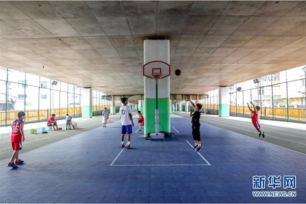 近日,位于浙江省臺州市黃巖區(qū)二環(huán)東路永寧江大橋下的閑置空地變身“橋下驛站”公共體育場所,總面積近7000平方米,包括籃球場、田徑場、輪滑場、五人制足球場等,成為市民運動健身的好去處。 新華社發(fā)(孫金標 攝)