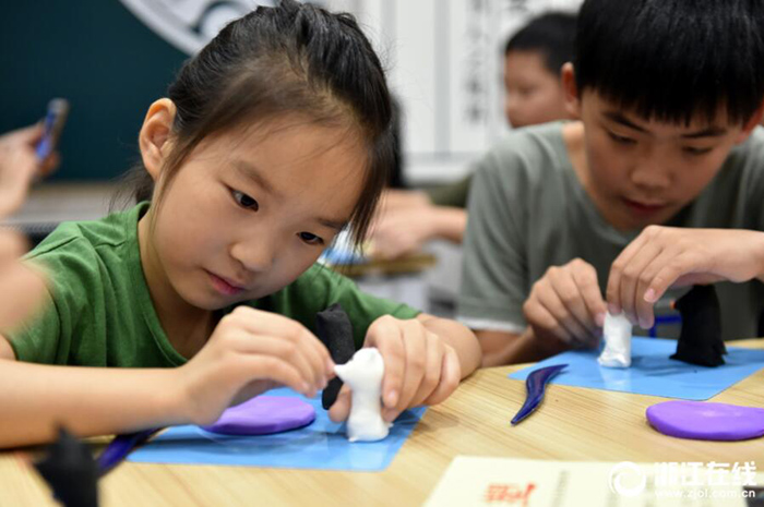 8月8日,杭州西溪城市文化公園活動室座無虛席,求智社區(qū)邀請非遺傳承人張其標(biāo)來傳授面塑技藝,吸引了眾多暑假里的小學(xué)生。