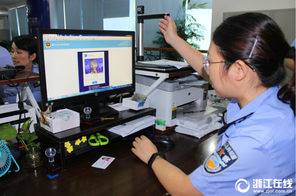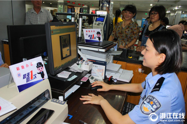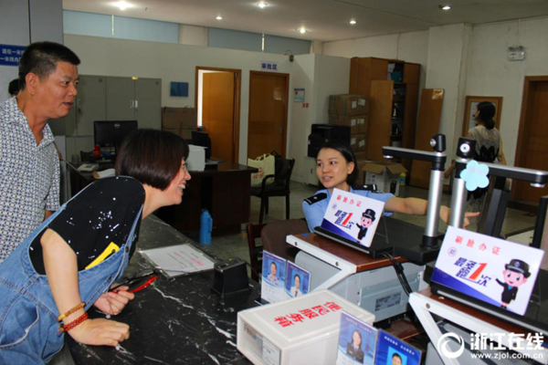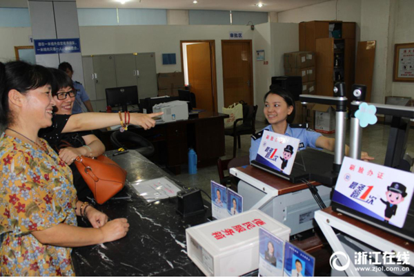 8月9日,臺(tái)州市椒江區(qū)人民政府行政服務(wù)中心公安窗口在“最多跑一次”改革中,推出“刷臉辦證”服務(wù)。市民即使忘帶身份證、戶口簿,只要報(bào)上姓名和身份證號(hào)碼,在窗口“高拍儀”前進(jìn)行人臉識(shí)別,再通過(guò)短信驗(yàn)證,就能辦好戶籍業(yè)務(wù),過(guò)程只需短短十秒左右,大大簡(jiǎn)化了市民辦事流程。(浙江在線拍友 何文斌 何嬌嬌 攝)