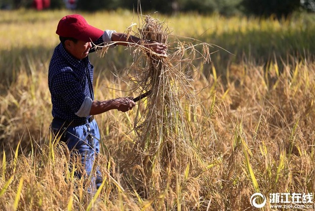 10月28日,杭州八卦田的水稻開始收割。