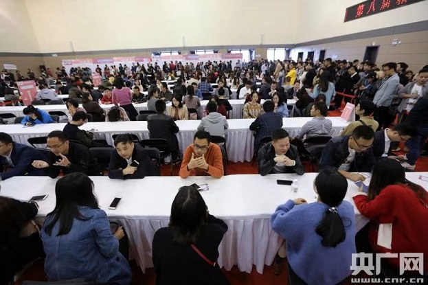 央廣網(wǎng)杭州11月12日消息(魏煒 攝)11月11日,在杭州市職工文化中心舉辦的2018第八屆相親嘉年華大型公益相親會(huì)盛大開幕。據(jù)主辦方杭州總工會(huì)相關(guān)負(fù)責(zé)人介紹,本次相親會(huì)吸引了近4000位杭州各行各業(yè)的單身青年報(bào)名參與,其中本科及以上學(xué)歷的占70%,年薪10萬以上的占80%。