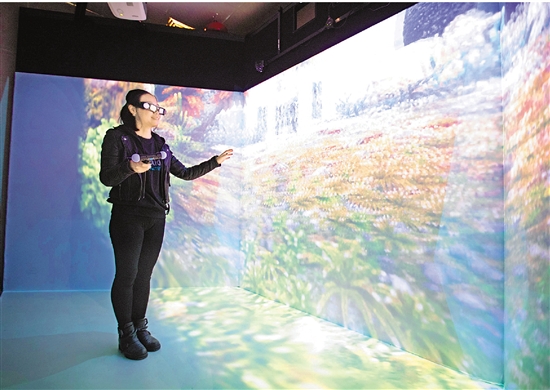 11月19日,聯(lián)合國世界地理信息大會(huì)在浙江德清開幕。會(huì)場內(nèi)外,無處不在的科技元素為參會(huì)嘉賓提供了不少新潮體驗(yàn)。圖為參會(huì)嘉賓體驗(yàn)全息影像。(記者 倪雁強(qiáng) 姚群 拍友 王正 攝)