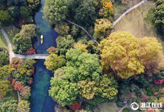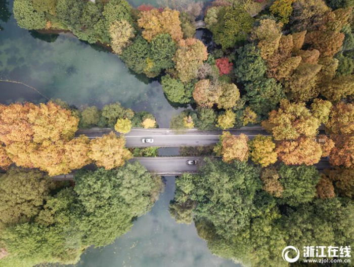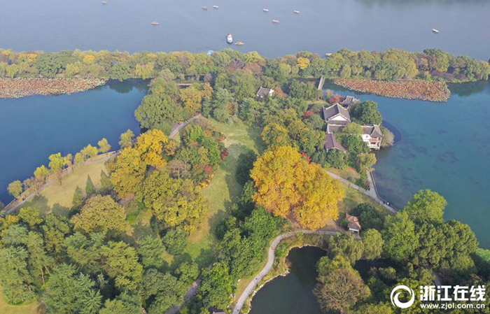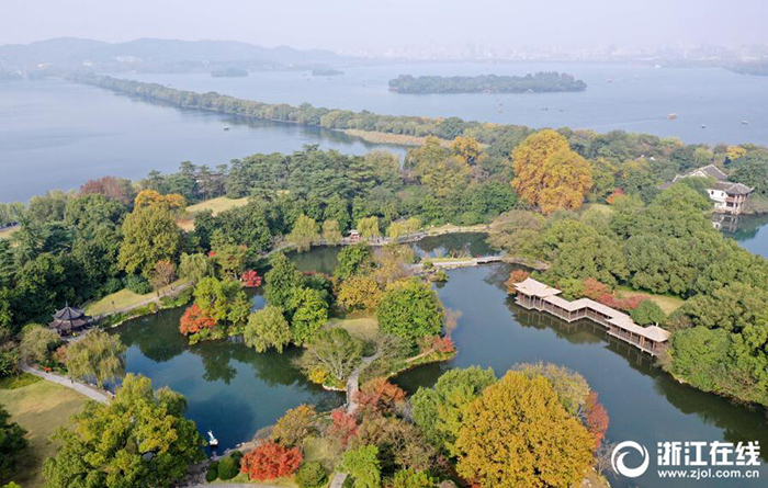 11月20日,時值秋末冬初,從空中俯瞰杭州西湖景區(qū),層林盡染,色彩斑斕,別有一番韻味。