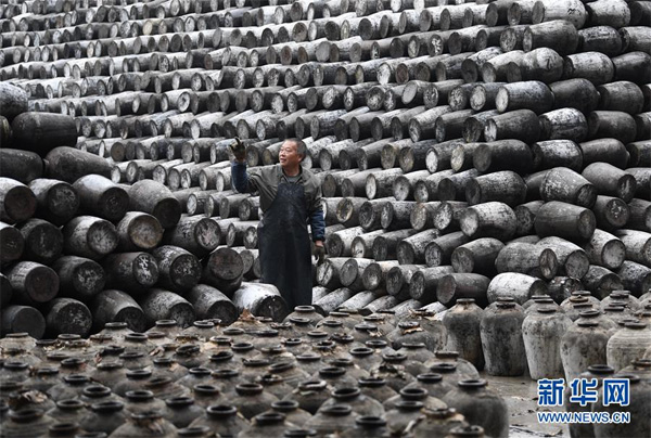 11月21日,工作人員在紹興女兒紅釀酒有限公司庫房整理黃酒壇。這里存放著許多客人存放的“女兒紅”,準備女兒出嫁時取用。 浙江紹興一帶有“生女釀好酒、婚嫁宴賓客”的習俗,所釀之酒稱“女兒紅”。在紹興市上虞區(qū)東關(guān)街道,一家釀酒廠仍保留著傳統(tǒng)的黃酒生產(chǎn)線,恪守著近20道釀造工序,延續(xù)著傳統(tǒng)黃酒的釀制技藝和生女必釀“女兒紅”的文化習俗。 黃酒是中國最古老的酒種之一,傳統(tǒng)黃酒僅在冬季取鑒湖水和糯米釀制,所得之酒澄澈馥郁。 新華社記者翁忻旸攝