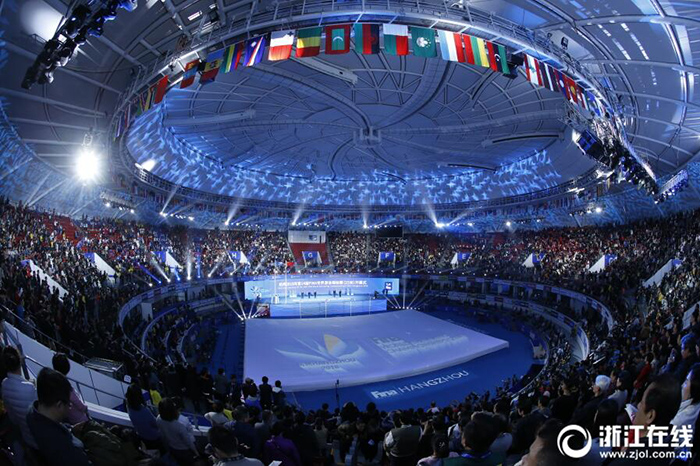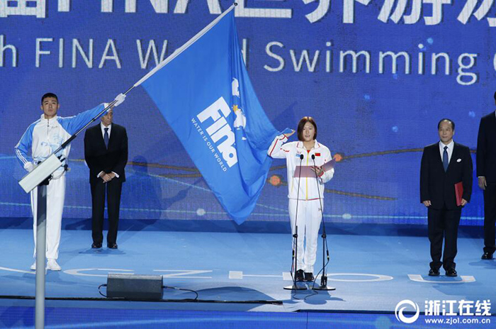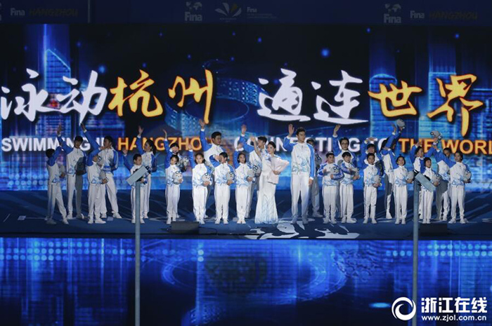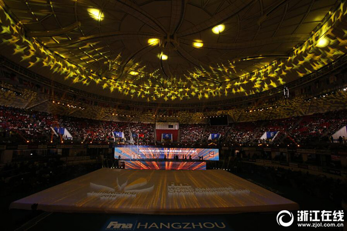 12月11日晚,第14屆FINA世界游泳錦標(biāo)賽(25米)開幕式在杭州奧體中心網(wǎng)球館舉行,浙江籍運(yùn)動(dòng)員孫楊葉詩文亮相。