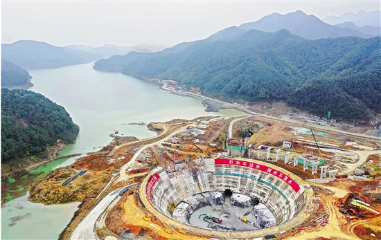 1月6日,從空中俯瞰杭州閑林水庫,千島湖配水工程的配水井已具雛形。這個“超級碗”可以蓄水約20萬立方米,千島湖湖水將通過輸水隧洞進(jìn)入這個碗狀的配水井,再分別向杭州城區(qū)多個方向輸水。