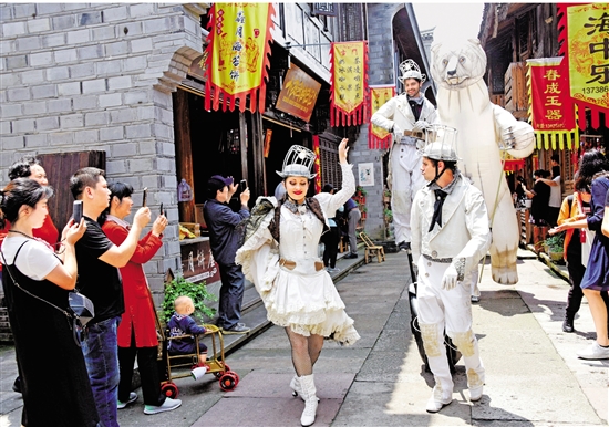 5月16日,來自法國的喧嚷劇團與上海的烏龍劇團的演員化身為夸張木偶,在臨海市紫陽古街巡游,吸引游客觀看。在5月19日“中國旅游日”來臨之際,臨海市舉辦為期五天的“臺州府城公共藝術(shù)節(jié)”,并以此為開端,利用三至五年時間,打造具有世界影響力的公共藝術(shù)和文化旅游品牌。(市委報道組 陳耿 記者 斯信忠 文 拍友 王華斌 攝)