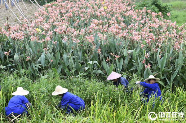 8月25日,杭州市富陽(yáng)區(qū)東梓關(guān)村,一些村民在清理雜草美化環(huán)境。