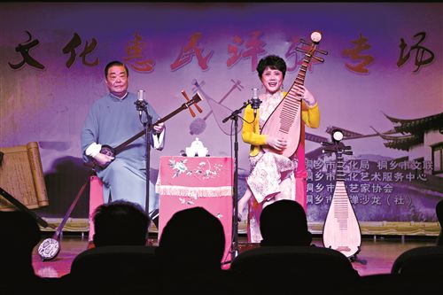 11月26日,在浙江桐鄉(xiāng)市文化藝術(shù)服務(wù)中心小劇場,來自嘉興評彈團的老藝人龐志英和蘇州評彈團的名家顧佳音為菊鄉(xiāng)百姓獻演評彈曲目,讓市民在家門口享受評彈藝術(shù)魅力。