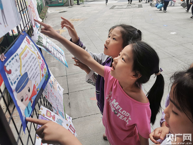 孩子們在觀看“防詐騙主題活動作品設(shè)計展”(央廣網(wǎng)發(fā) 尤珊攝)