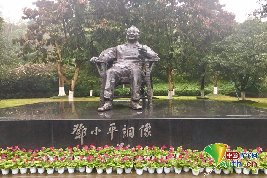 漫步在鄧小平故里主游道,四周綠樹環(huán)抱,青石板鋪成的小路整潔美觀,耐磨防滑,滲水極強。雖然天空下著小雨,但路上無積水,不用擔心會打濕腳或摔倒。在工作人員的帶領(lǐng)下,記者們首先來到了鄧小平銅像廣場,以三鞠躬深深地緬懷鄧小平同志,表達對一代偉人的敬仰與懷念之情。