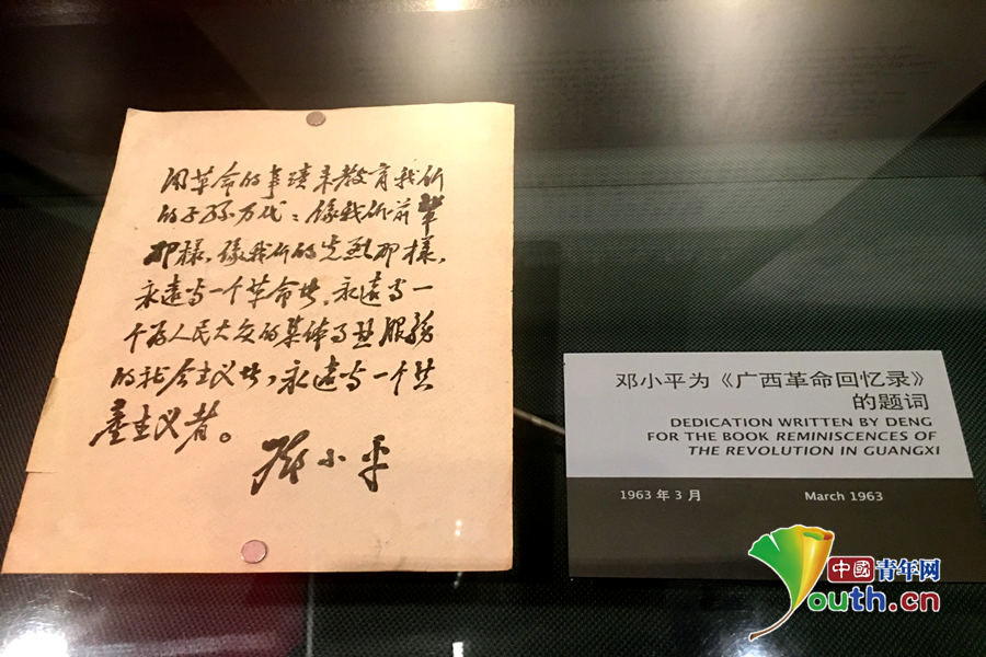 陳列館內(nèi),小平為“廣西革命回憶錄”題字。隆敏 攝