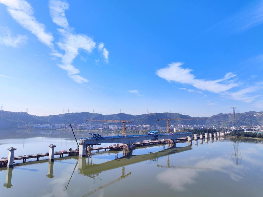 溫玉鐵路漩門灣特大橋主跨合龍現(xiàn)場(chǎng) 上海局供圖