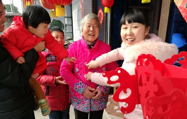 “這粉色的衣裳太喜慶了,我老太婆可穿不出去啊!64歲的諸桂娥奶奶邊試穿衣服邊開心地跟孫子的“愛心爸爸、媽媽”們說著!按髬,我們希望您穿上新衣服后福氣越來越好!