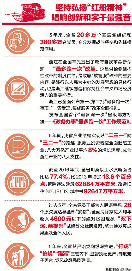 改革不停頓、開放不止步!凹t船精神”激勵浙江兒女把握發(fā)展這一時(shí)代主題和黨執(zhí)政興國的第一要務(wù),大膽探索,創(chuàng)新創(chuàng)業(yè)。