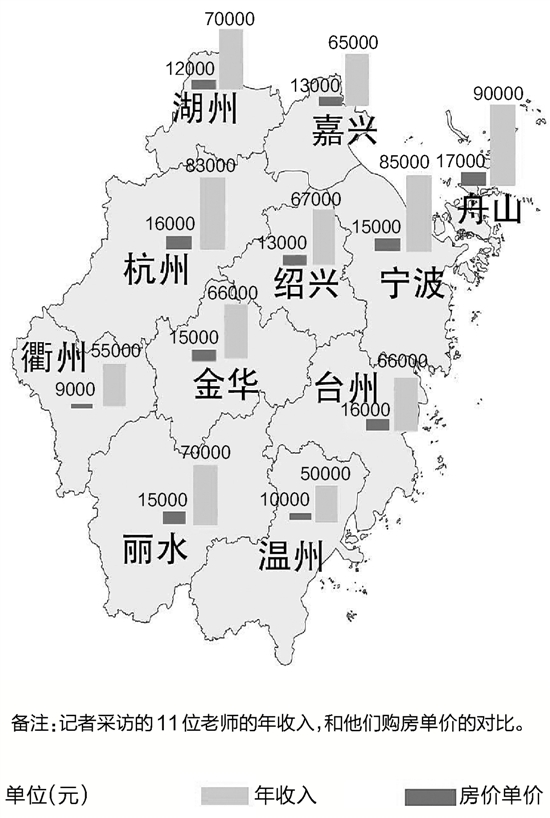 這一現(xiàn)象在一些房?jī)r(jià)偏高的城市特別明顯。從各地教師的年收入看,收入最多相差4萬(wàn)元,但各地房?jī)r(jià)的差距更大。同樣的年收入,在杭州、寧波這樣的高房?jī)r(jià)城市,生活壓力明顯不一樣。(浙江在線記者 梁建偉 實(shí)習(xí)生 沈佳麗)