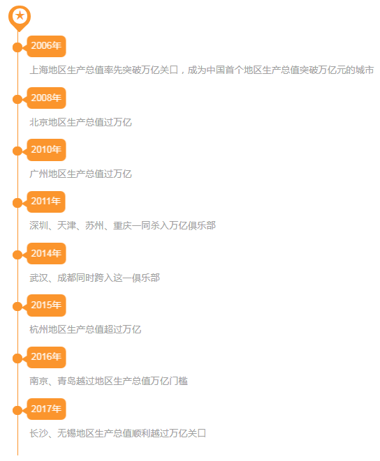 排名在寧波之前的14座城市,涌金君為您梳理一下他們是何時(shí)越過(guò)萬(wàn)億門檻的: