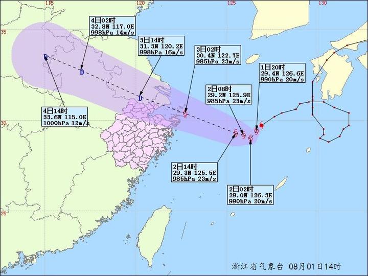 最新消息,今年第12號臺風“云雀”(熱帶風暴級)今天(8月2日)08時位于距離浙江省舟山市東偏南方向約430公里的東海海面上,就是北緯28.7度、東經126.4度,9級(23米/秒),985百帕。預計,“云雀”將以每小時18公里左右的速度向西北方向移動,強度維持或略有增強,并將于3日早晨到上午在浙江舟山到上海一帶沿海登陸(熱帶風暴級,8-9級,18-23米/秒)。