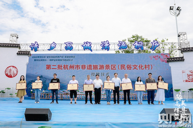 此外,作為今年杭州市“文化和自然遺產(chǎn)日”桐廬主場,活動現(xiàn)場,杭州市文化廣電旅游局為9個第二批杭州市非物質(zhì)文化遺產(chǎn)旅游景區(qū)(民俗文化村)和8個第二批杭州市非物質(zhì)文化遺產(chǎn)傳承教學(xué)基地授牌。