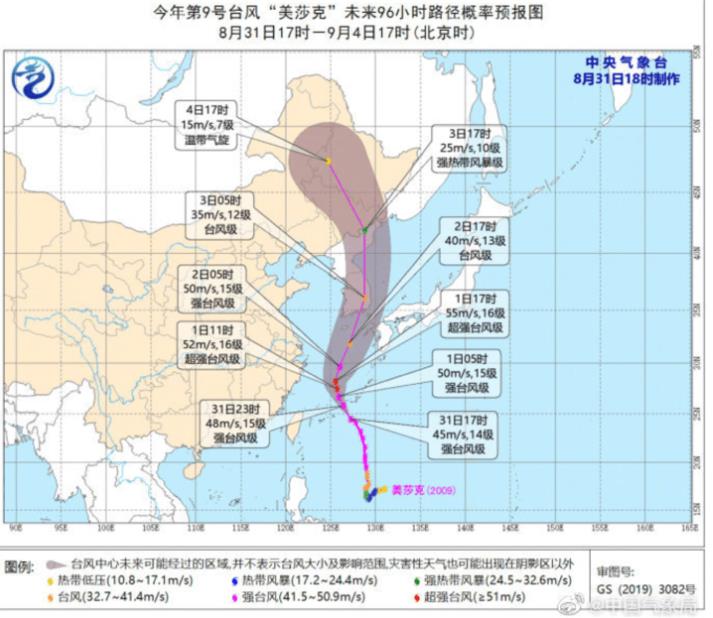 再把目光回到時(shí)下海面上的天氣主角——“美莎克”。它正沿著東經(jīng)125°以東的海域北上,今天是它距離浙江最近的一天,自從凌晨移入東海后,它的強(qiáng)度繼續(xù)增強(qiáng)。預(yù)計(jì)今天東海海域風(fēng)力可增大到到13-15級(jí)。今日午后它將在東海北部逐漸轉(zhuǎn)向北偏東方向移動(dòng),趨向朝鮮半島南部。