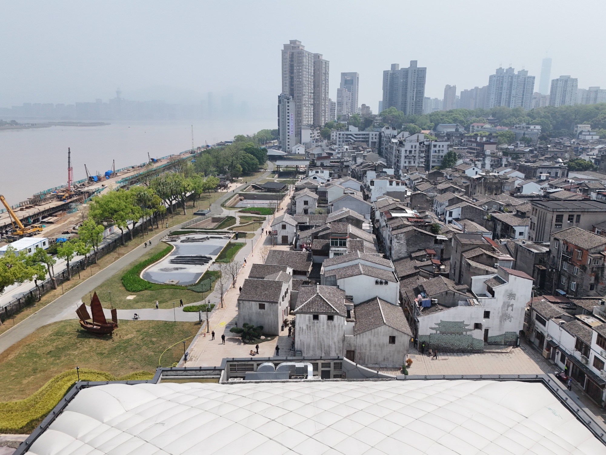 全長380米的朔門歷史文化街區(qū),完整保留了“山、城、港、江、嶼”融為一體的“斗城”肌理。一批時尚新業(yè)態(tài)悄然入駐,咖啡香與海風(fēng)味交織,文創(chuàng)巧思與古跡滄桑對話。街區(qū)東端的“來遠驛”,由曾經(jīng)的“浙江省第一高樓”東甌大廈改造而成,頂層觀景平臺可盡覽古港全貌。