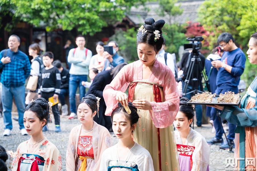央廣網(wǎng)寧波4月18日消息(記者杜金明 通訊員王伊婧)桃之夭夭,灼灼其華。4月17日下午,一場(chǎng)“灼灼芳華——上巳及笄禮”體驗(yàn)活動(dòng),在寧波天一閣舉行;顒(dòng)生動(dòng)還原了3000多年前漢民族女孩的成人禮——笄禮,向大家展示中華禮儀之邦的風(fēng)范與魅力。